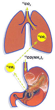 A C13 urea légzésteszt a beteg által bevett C13 ureából